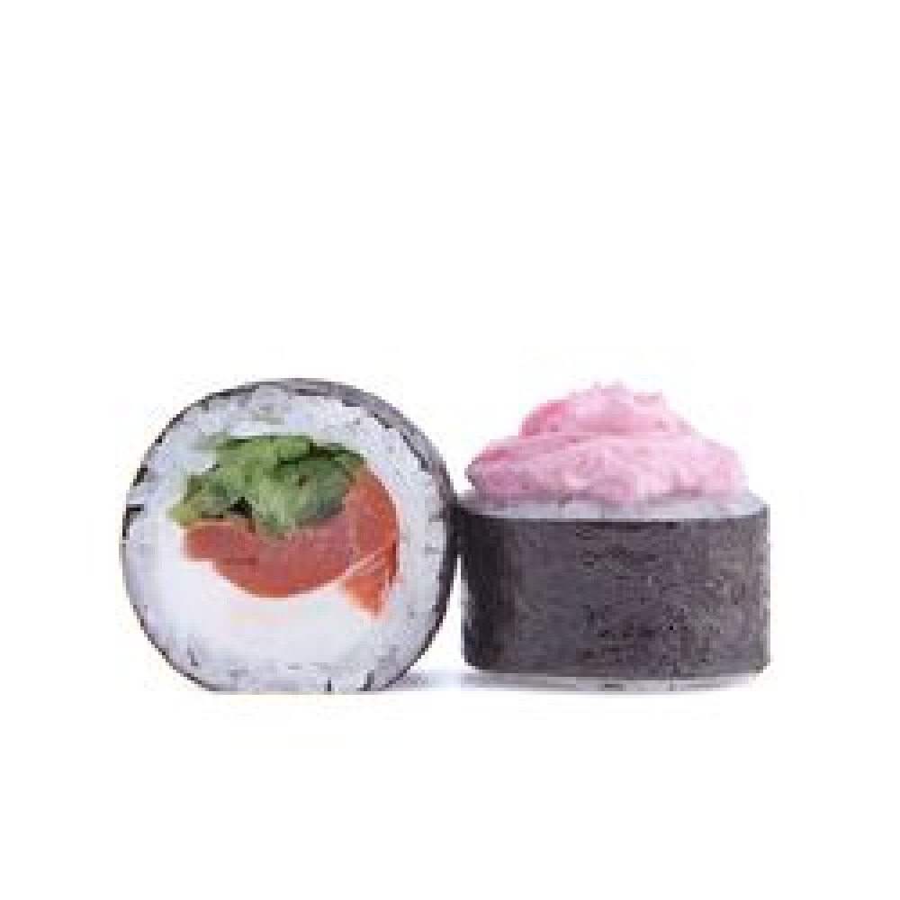 Рис, Норри,Огурец, Копченый лосось, Соус лава