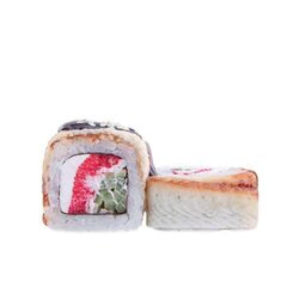 Рис, Норри, Сыр сливочный, Снежный краб, Огурец, Угорь, Икра масаго, Соус унаги, Кунжут