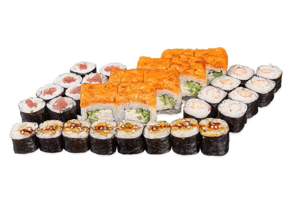 Маки с угрем, маки с тигровой креветкой, маки с тунцом, Сакура.