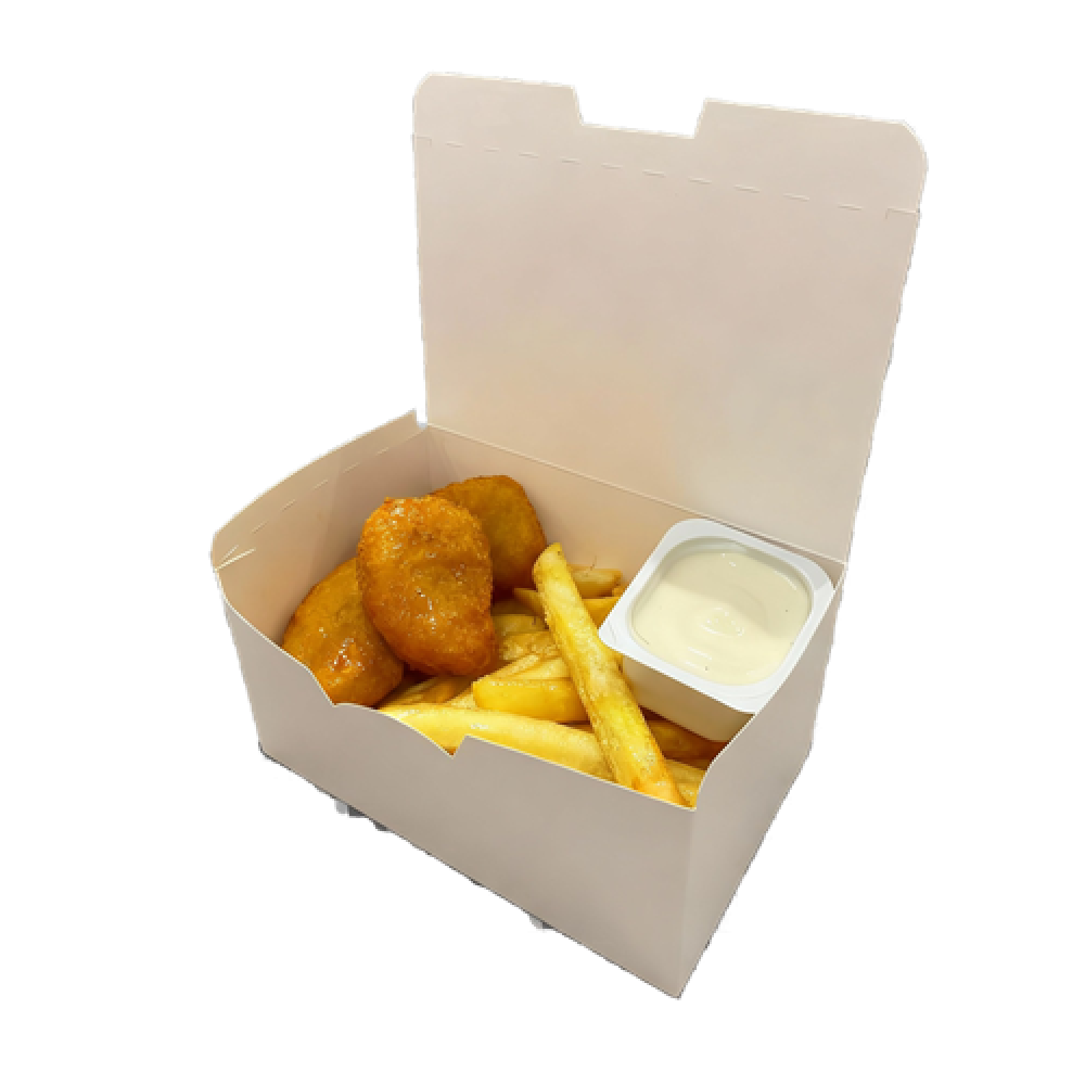 Картофель фри, Наггетсы куриные 3шт, Соус сырный.