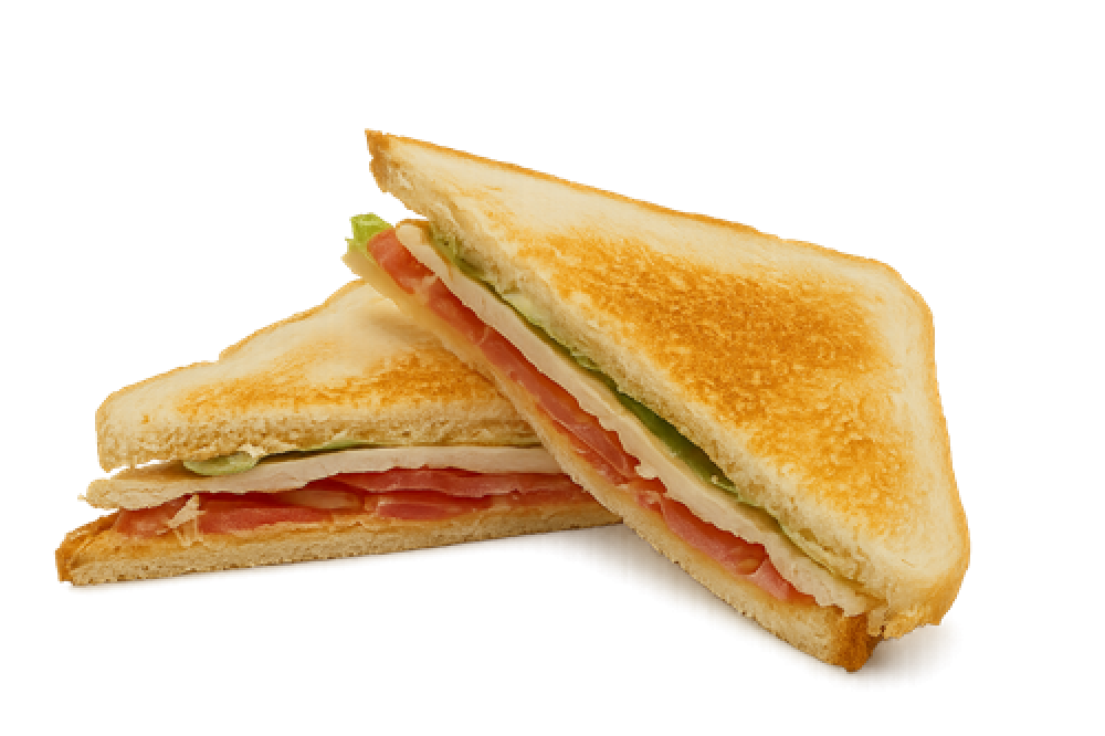 Торстерный хлеб, куриное филе, свежие томаты, айсберг, соус Цезарь.