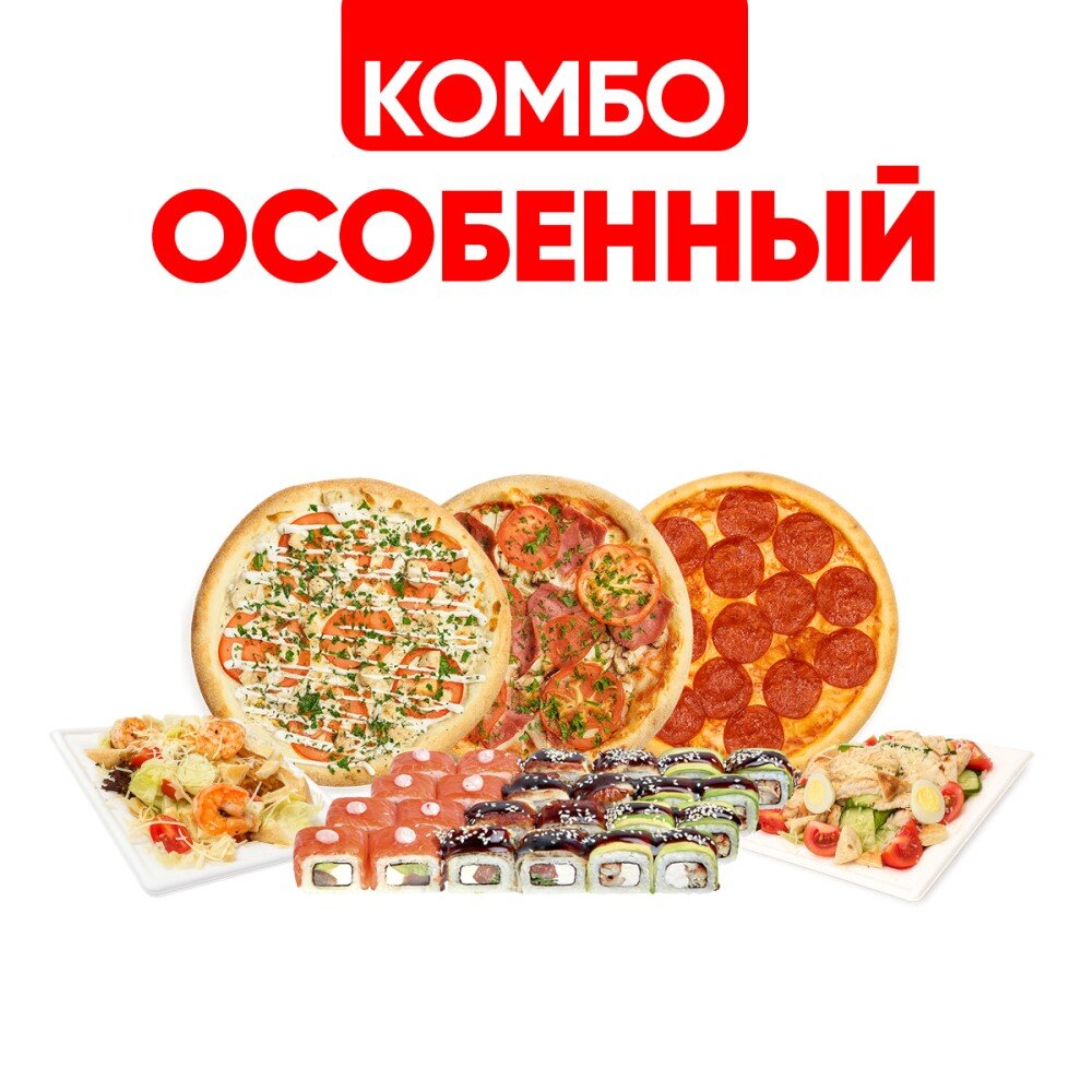 Сет Дракон: "Красный Дракон", "Зеленый Дракон", "Золотой Дракон"; 2 салата Цезарь: "С Курицей", "С Креветкой"; 3 пиццы 30см.: "Пеперони лайт", "Копченая", "Жульен".