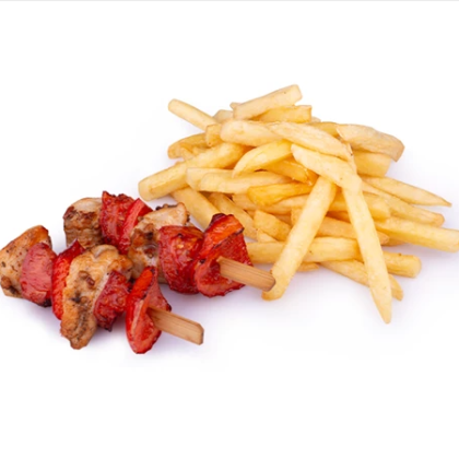 Картофель фри с куриным шашлычком и сырным соусом