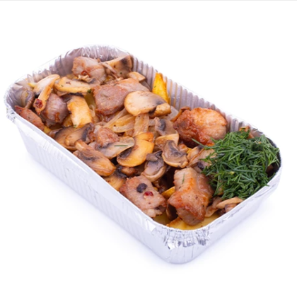 Жареный картофель со свининой и грибами