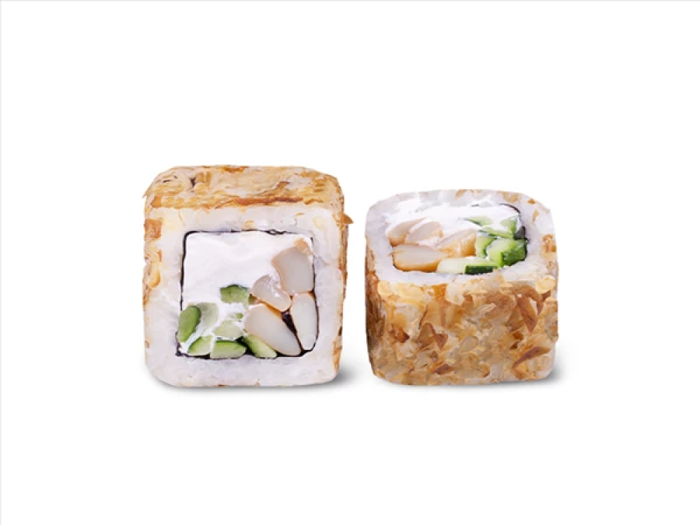 Кальмар Унаги, сливочный сыр, огурец, стружка тунца.