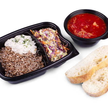 Гречневая каша с жульеном и салатом Клоу Слоу