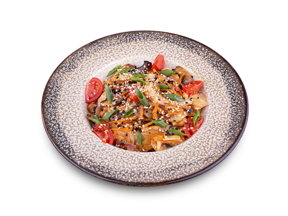 Вок со свининой и цыпленком в соусе Чили-Кимчи