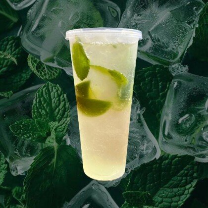 Спрайт, дольки лайма, сироп "Клубника",мята, лёд.