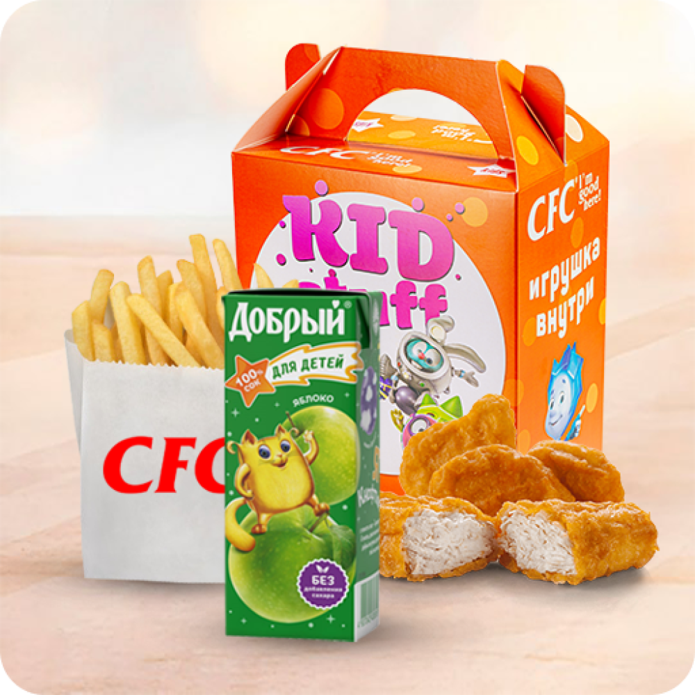 КидСтафф для мальчика с наггетсами и яблочным соком