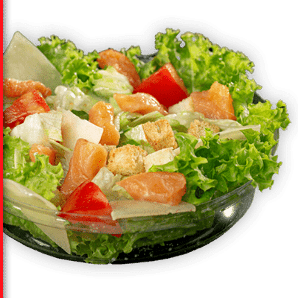 Соус цезарь, семечки, пармезан, сухарики, красная рыба, помидоры, руккола, айсберг.