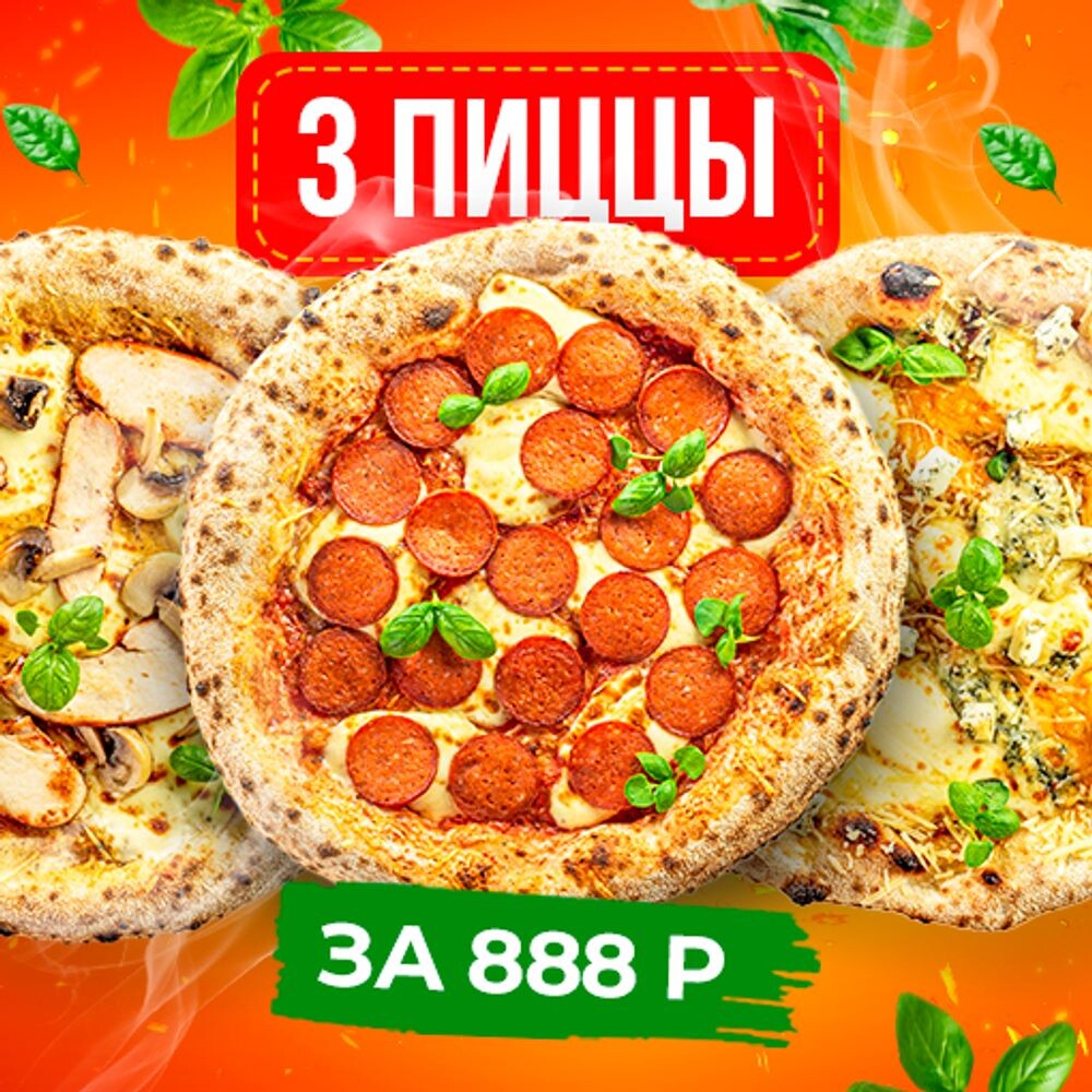 3 пиццы за 888 от Gusto Pizza