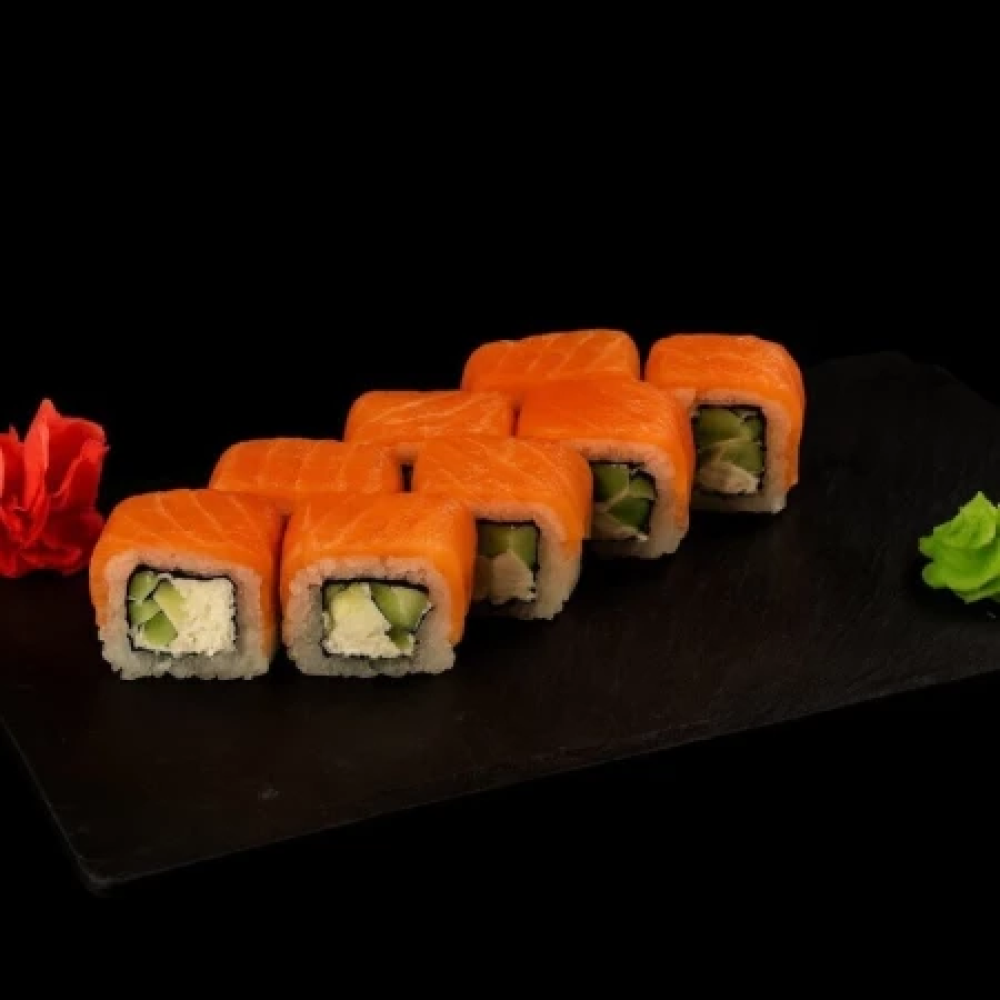 Рис, сливочный сыр, лосось авокадо/огурец.