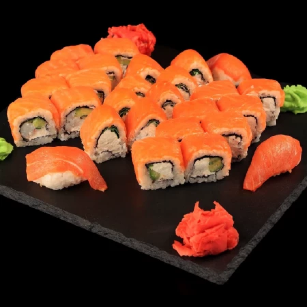 Ролл Филадельфия "Грин",Ролл Филадельфия с авокадо, Ролл "Бонсай", суши лосось 3шт.