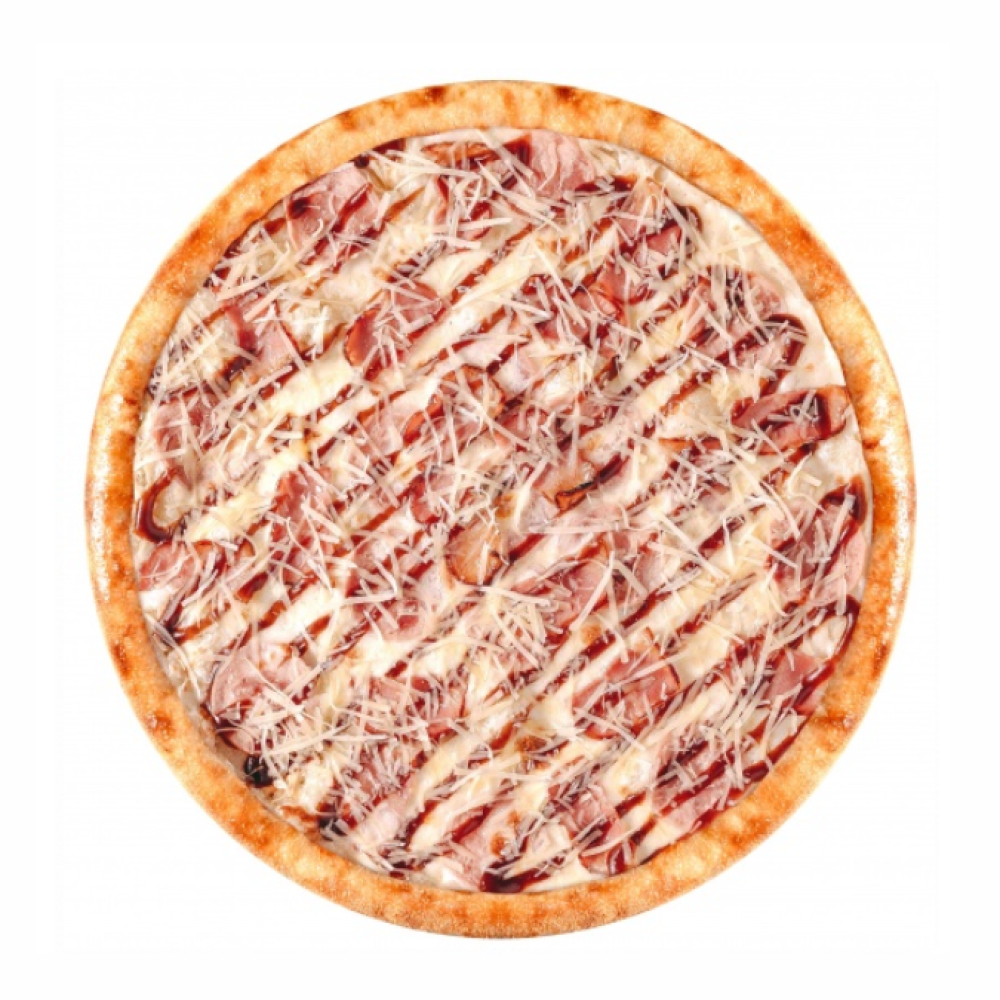 Сыр моцарелла,Сливки 33%,Ветчина,Бекон,Сыр Пармезан твердый,Соус барбекю.
