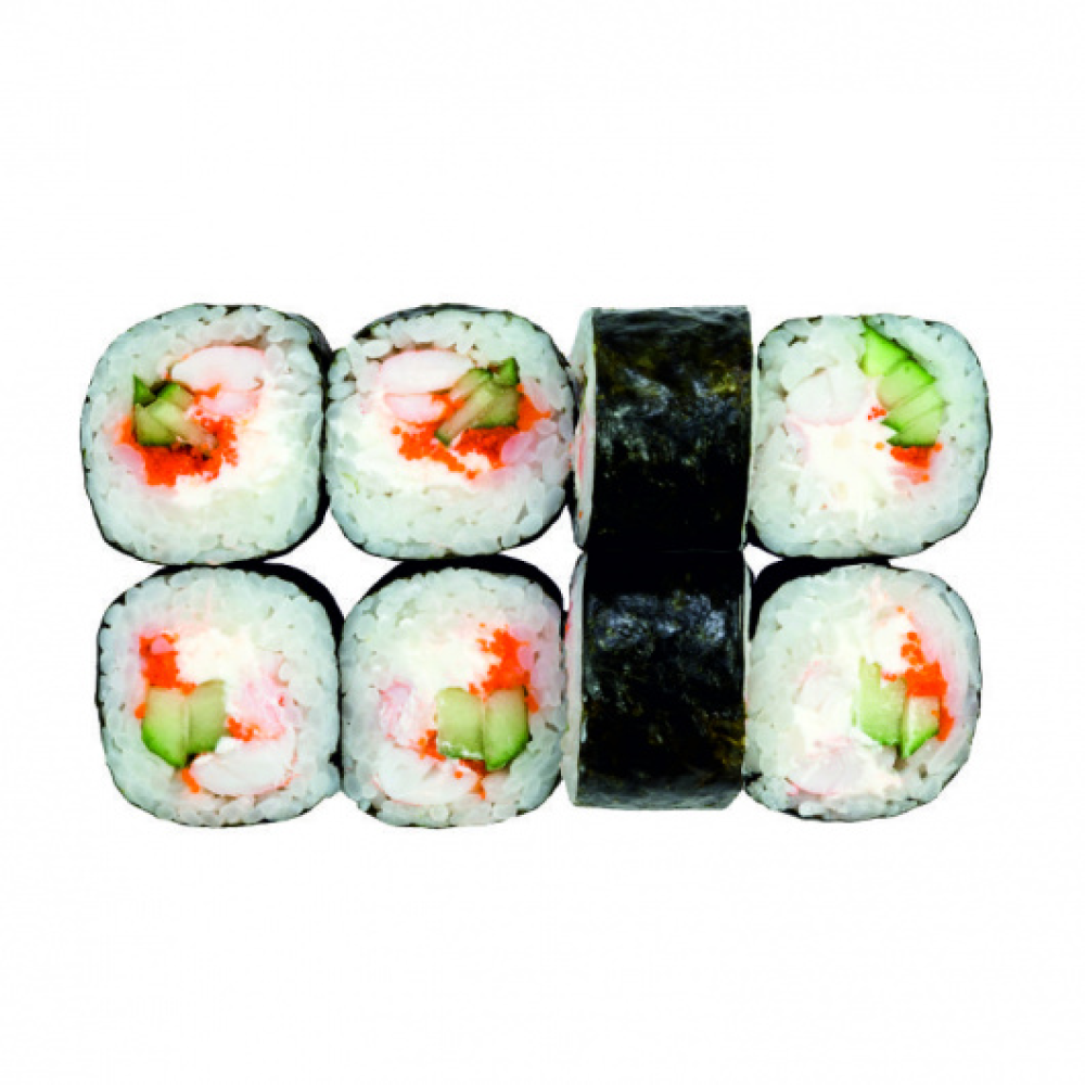 Нори, рис, сыр творожный, креветка, огурец, икра масаго