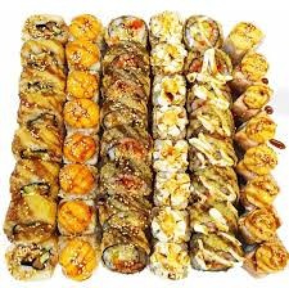 Запеченный с Лососем 8шт Нагай 8шт Темпуран с Лососем 8шт Эби Темпура Сяки 8шт Темпура Кани 8шт Мураками 8шт Сакура 8шт