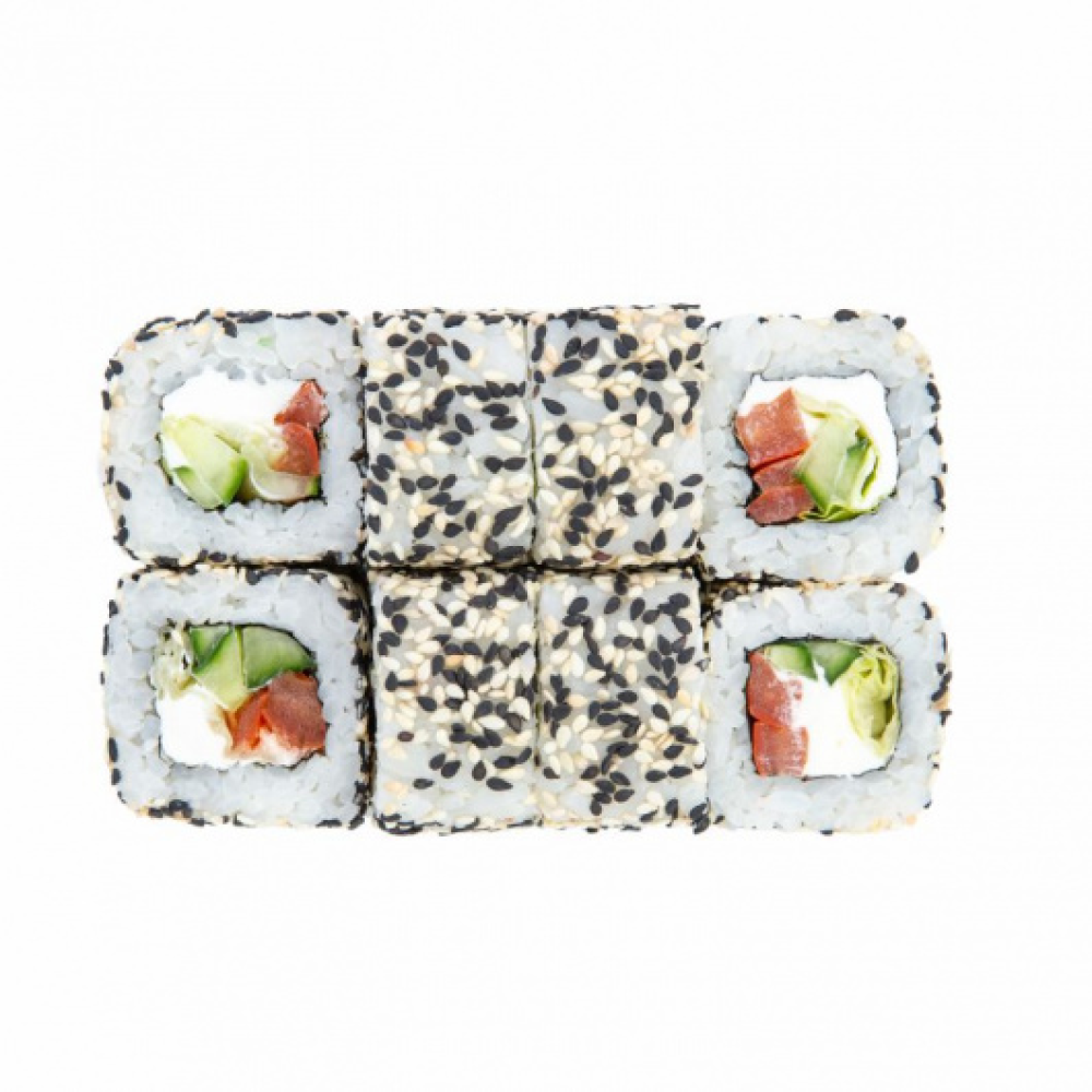 Нори, рис, сыр творожный, огурец, помидор, салат Айсберг, микс кунжута
