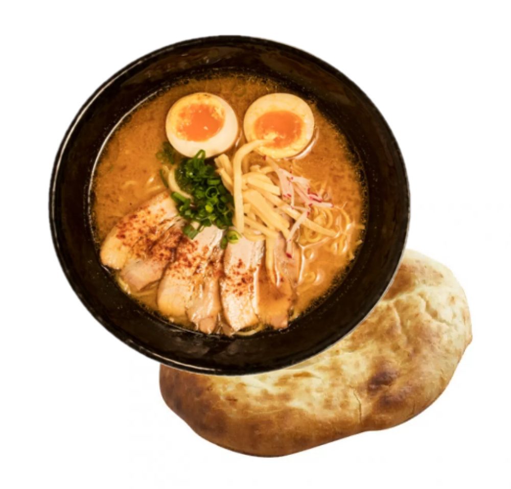 Куриный бульон,Шампиньоны,Морковь,Курица,Лапша лагманная,Кунжутное масло,Яйцо,Кунжут белый,Лепешка.
