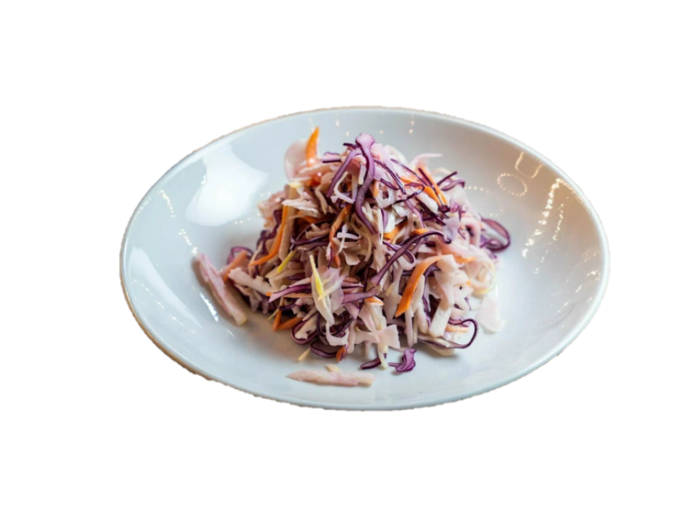 Капуста белокочанная,Капуста краснокачанная,Морковь,Соус цезарь,Соус горчичный.