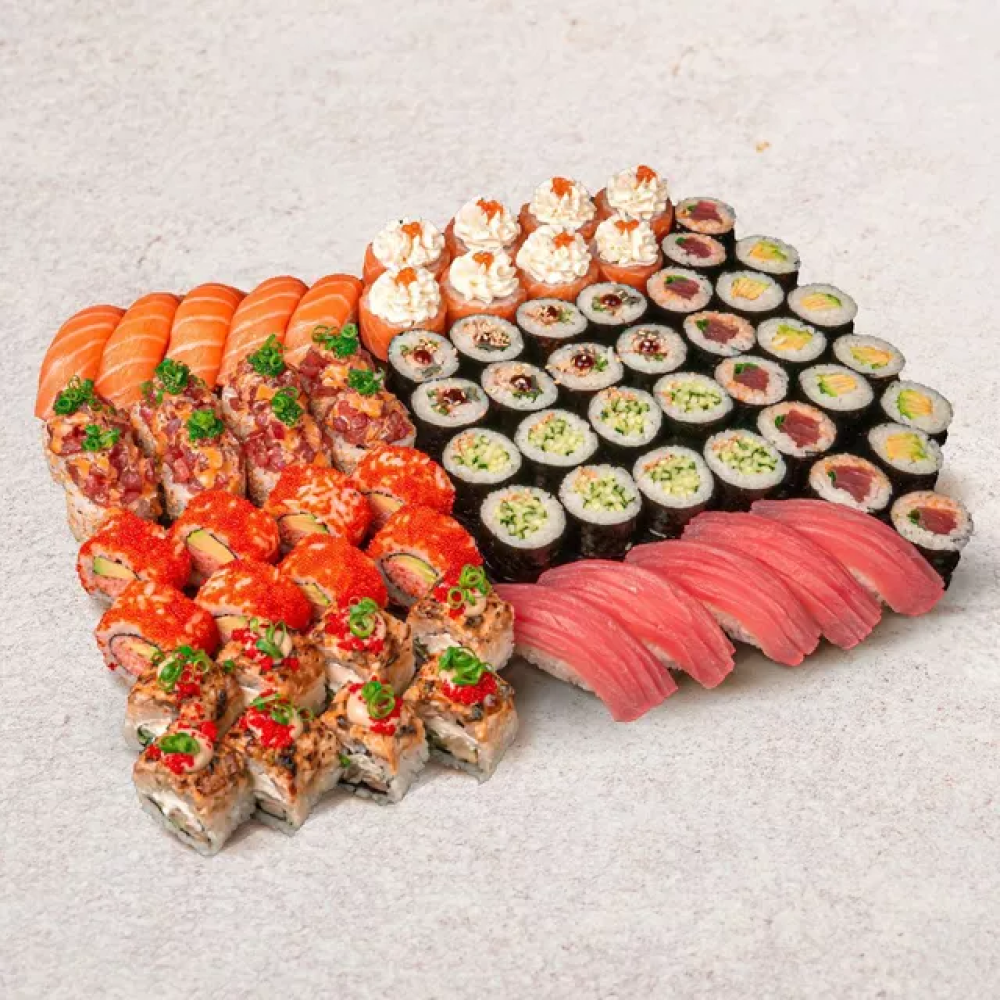 Абури с угрем, суши лосось 5 шт, калифорния, суши тунец 5 шт, делюкс, мини с огурцом, мини с угрем, мини с тунцом, мини с авокадо, тартар тунец