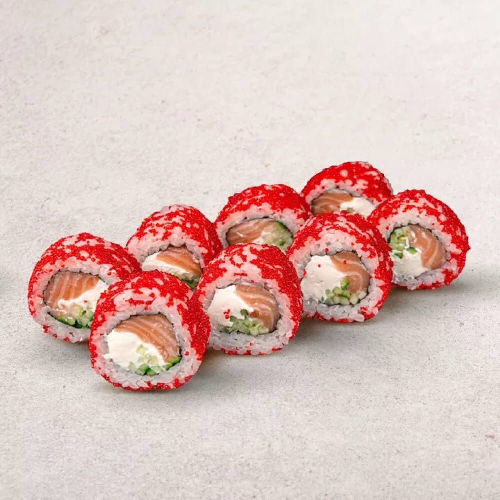 Рис, нори, лосось, сыр, огурец, масаго