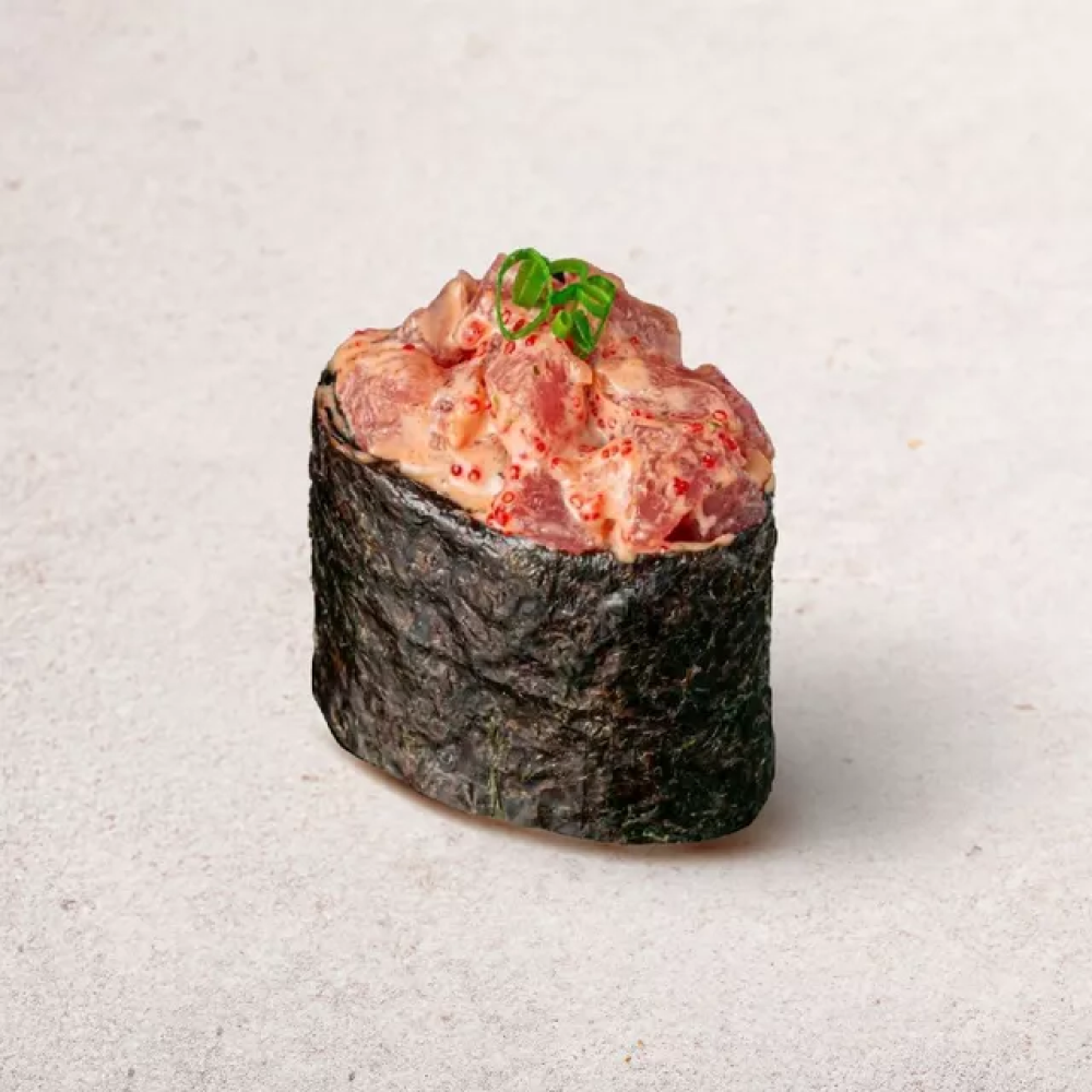 Рис, нори, тунец, сливочный унаги, масаго красная, лук зеленый
