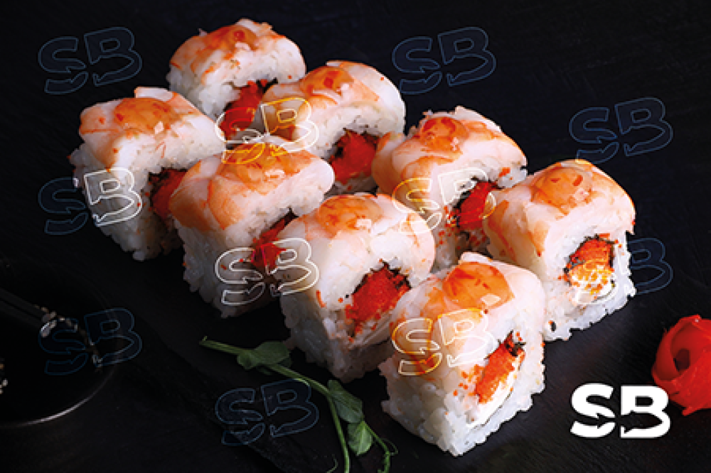 Креветка, сыр творожный Cremette, масаго, соус сладкий чили.
