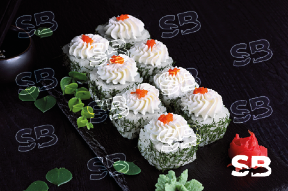 Креветка, сыр творожный Cremette, огурец, соус яки, масаго, укроп.