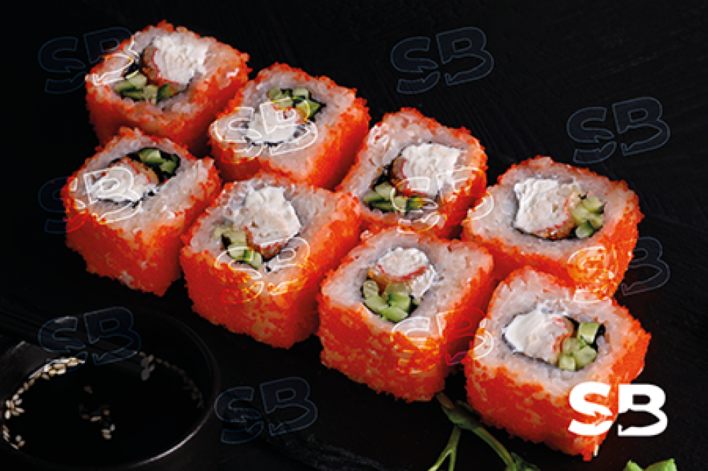 Снежный краб, сыр творожный Cremette, огурец, масаго.