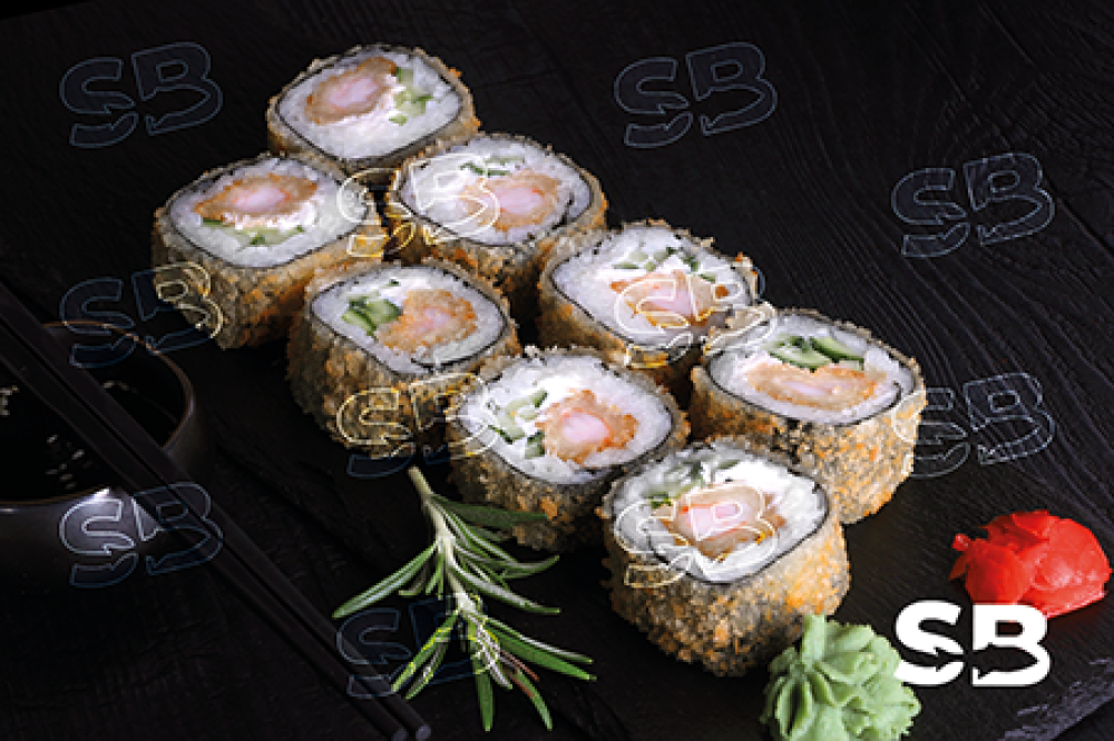 Креветка темпура, сыр творожный Cremette, огурец.