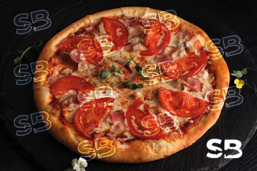 Куриное филе, бекон, моцарелла, томаты, соус томатный.