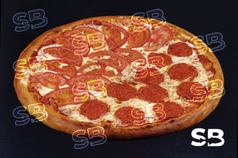1/2 Маргарита: Моцарелла, томаты, соус томатный; 1/2 Пепперони: Пепперони, моцарелла, соус томатный.
