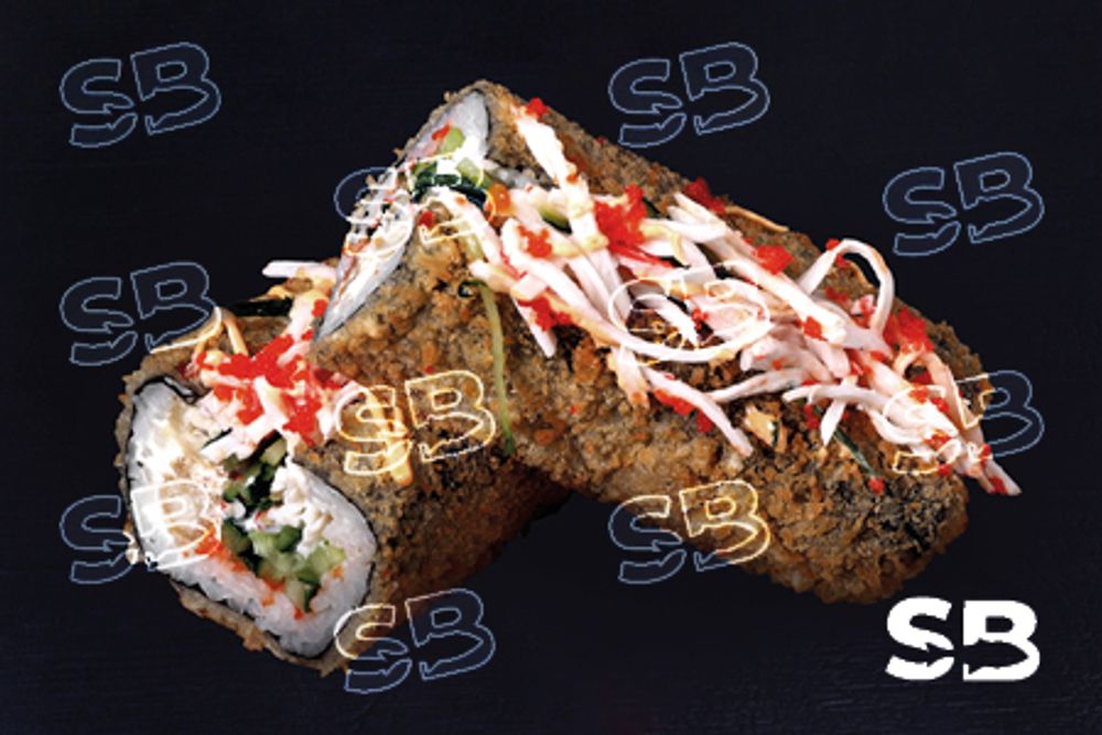 Окунь темпура, снежный краб, сыр творожный Cremette, огурец, соус сладкий чили, майонез, масаго.